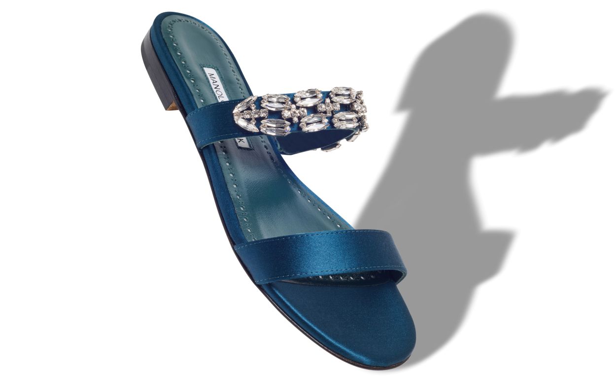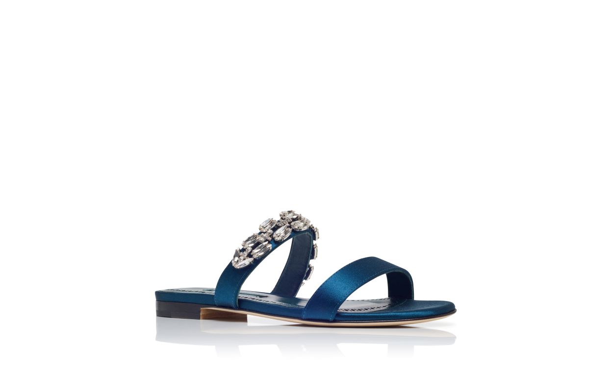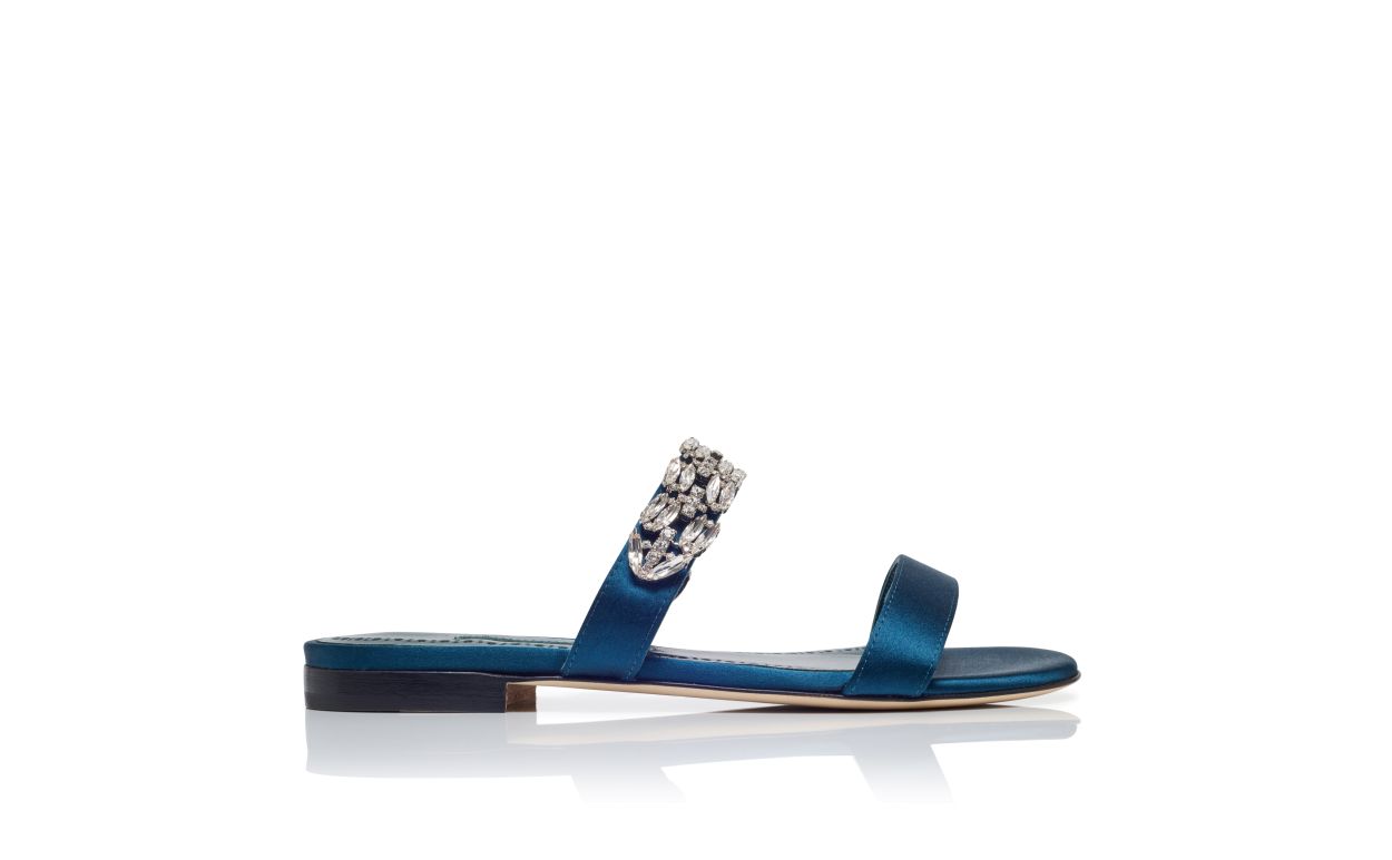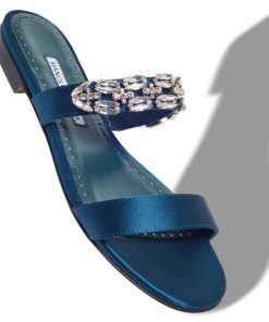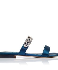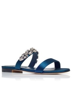 Manolo Blahnik Women’s Style Sakotaflat | Navy Blue Satin Embellished Flat Sandals