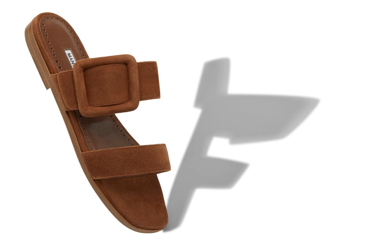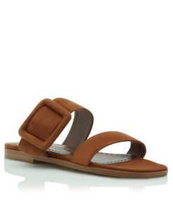 Manolo Blahnik Women’s Style Titubaflat | Brown Suede Flat Sliders | Brown